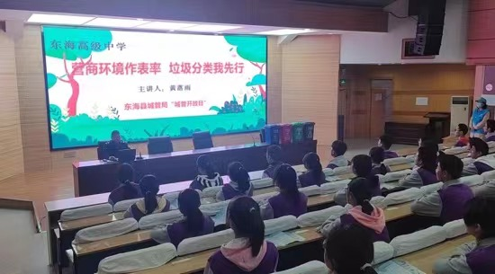 创建生活垃圾分类硬件设施。环卫部门投入资金,建成垃圾分类小区82个,设置垃圾分类小区投放防盗式垃圾分类果皮箱300余组、垃圾分类收集亭82座、垃圾分类宣传栏246个、定时定点垃圾分类收集房10座;配备可回收物收集车2辆、有害垃圾收集车1辆,建立智能化处理平台,实现循环再利用,促进生活垃圾分类工作有序发展。与此同时,组织垃圾分类志愿队伍进入校园,就垃圾分类方法、步骤等知识进行详细讲解,加深学生对垃圾分类的印象。县实验小学、幼儿园组织部分儿童,走进东海县生活垃圾分类宣教基地参观,为孩子们养成垃圾分类的良好习惯创建氛围。