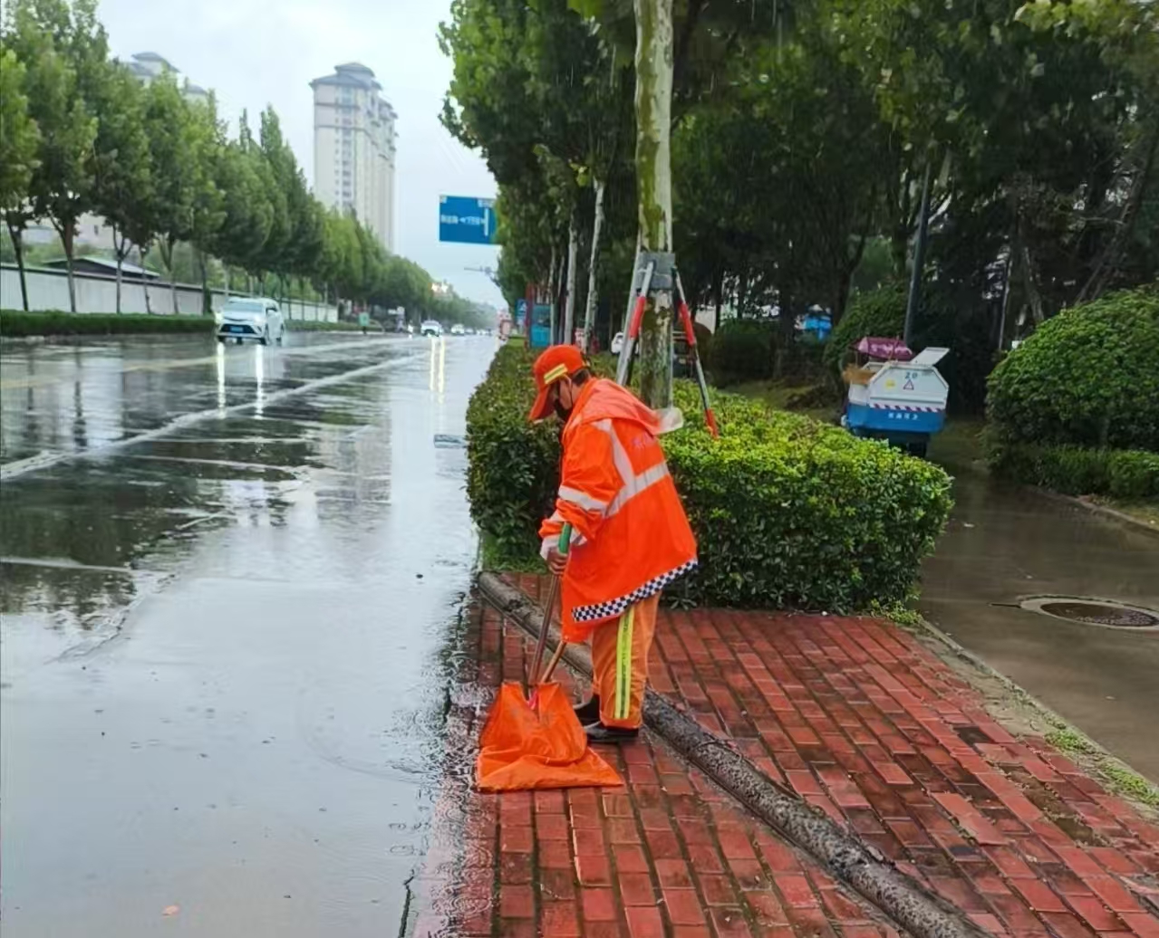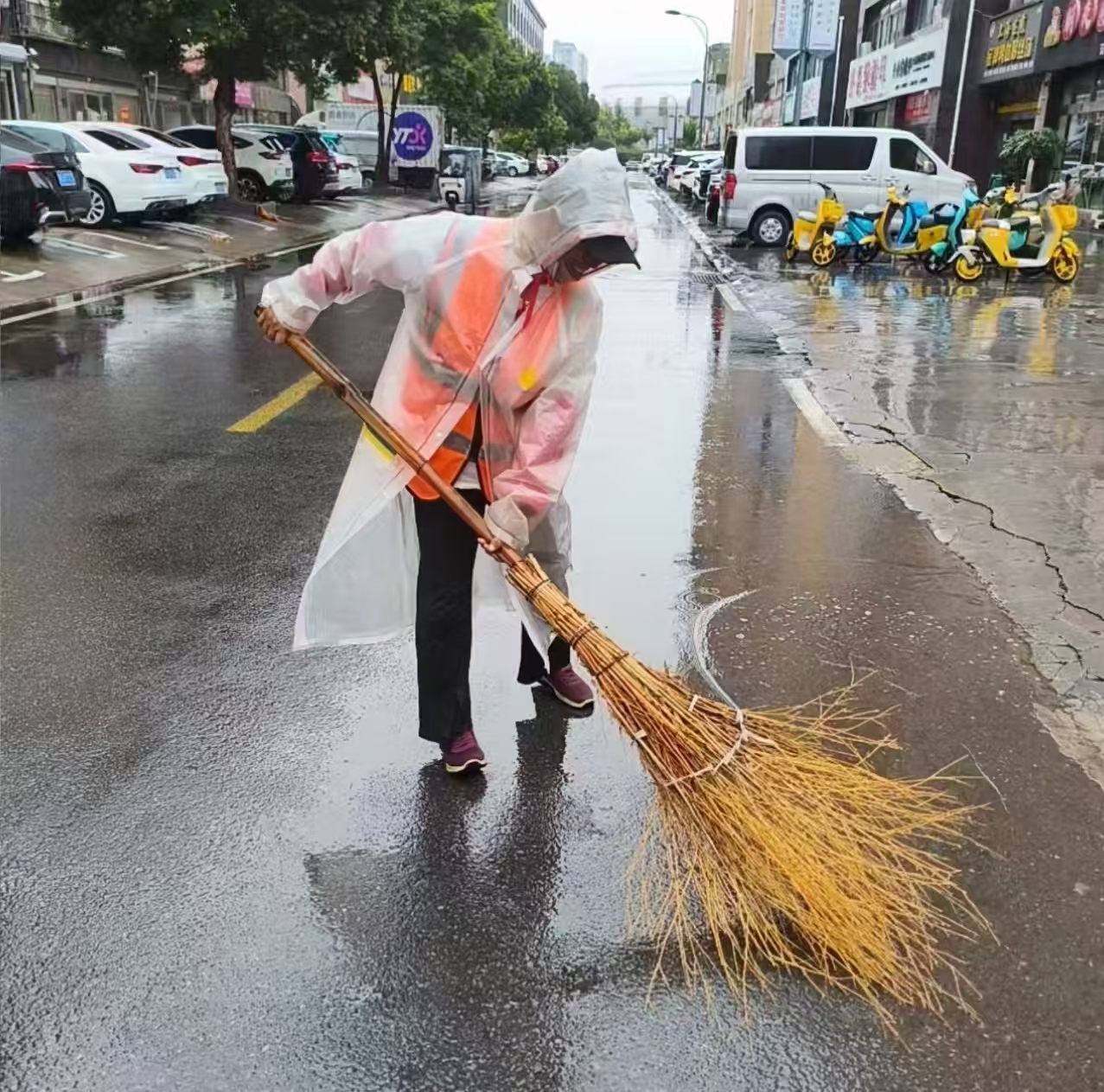 10月1日上午雨水淋淋,在和平东路的路段上,今年66岁的环卫工人袁大爷穿着环卫服,正在忙着清扫。他用大扫帚吃力地推刮紧贴在地面上的枯叶、碎纸屑等垃圾。“我今天早晨不到5点钟就来到自己的路段上,抓紧时间先将夜里路面上的垃圾清扫一遍。等到七、八点钟以后,人流车流量一多,既妨碍到清扫作业,清扫起来比较困难。”袁大爷说。不一会工夫,袁大爷的额头上就冒出了汗珠,脱下外套衣服卖力的清扫路面。笔者在城区和平路、海陵路、菜市街路等路段上看,数百名环卫工人都在埋头清理路面上的垃圾。他们有的用大扫帚清扫地面,有的一手拿着小扫帚、一手拎着簸箕在巡回清扫保洁。尽心尽责的东海环卫工人,用行动践行职责,用心做好清扫保洁服务,让广大市民度过温馨的中秋佳节。在海陵西路忙于清扫的环卫工人李大妈告诉笔者;作为一名环卫工人在马路上渡过国庆中秋节,而且更是别有一番意义。