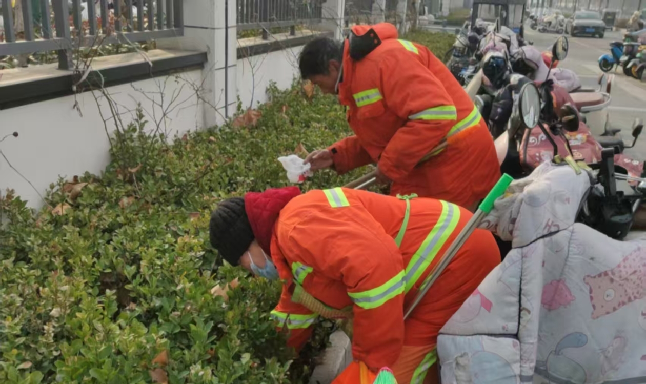 笔者在东海城区范围内的和平路、海陵路、菜市街路等路段上看,数百名环卫工人都在埋头清理路面上的垃圾。他们有的用大扫帚清扫地面,有的一手拿着小扫帚、一手拎着簸箕在巡回清扫保洁。尽心尽责的东海环卫工人,用行动践行职责,用心做好保洁服务,让广大市民度过温馨的节日。在海陵西路忙于清扫的环卫工人王大妈告诉笔者;“作为一名环卫工人在马路上度过了这个蛇年春节,而且更是别有一番意义”。