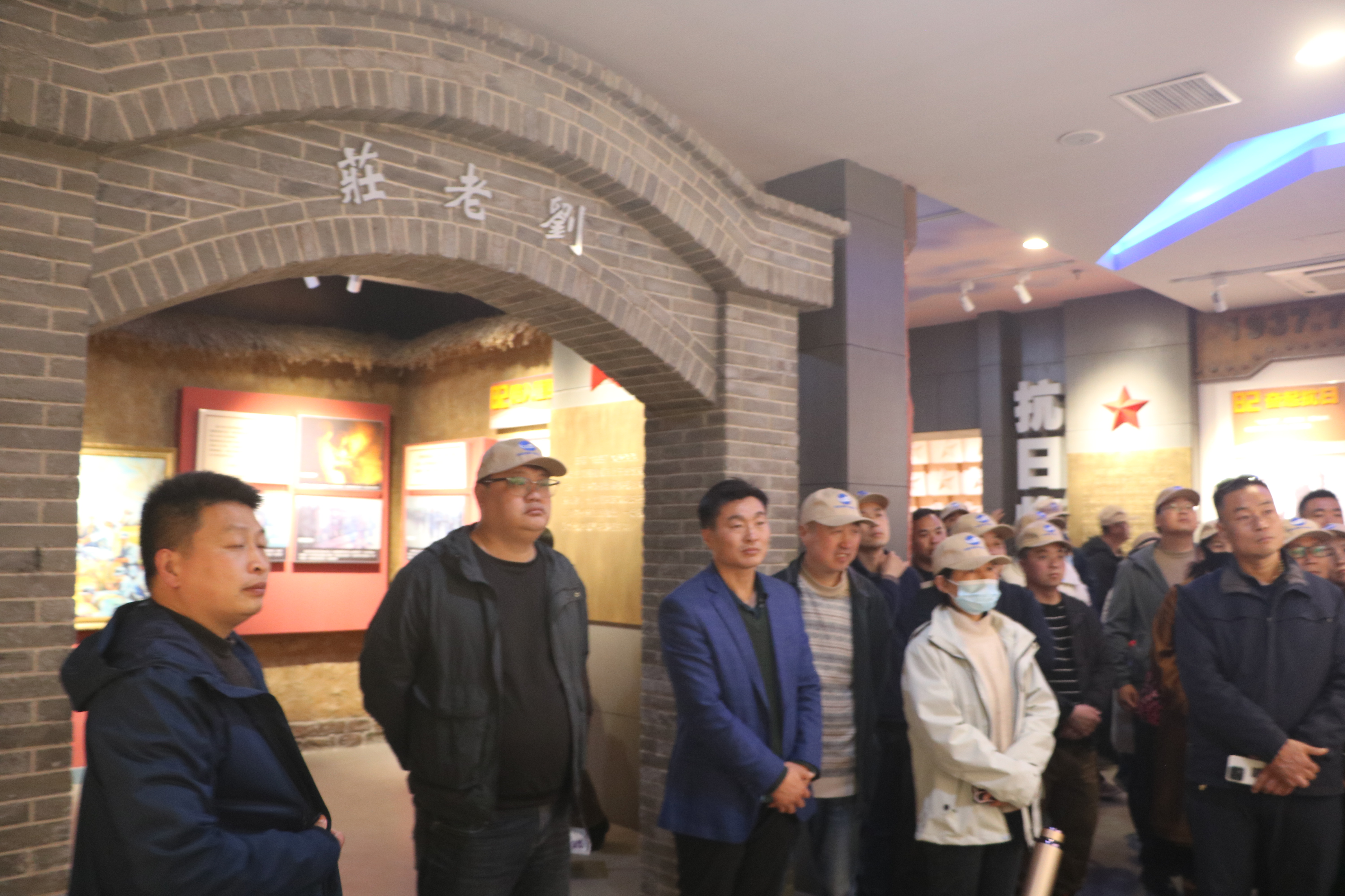 缅怀革命先烈,传承红色基因。离开周恩来故居后,队伍奔赴刘老庄八十二烈士纪念馆。这座庄严肃穆的纪念馆,铭记着82位烈士的英勇事迹。1943年,为掩护地方群众和党政领导机关安全转移,新四军三师七旅十九团二营四连82名官兵,在刘老庄与1000余名日伪军浴血奋战,从拂晓到黄昏,连续打退敌人5次进攻,终因寡不敌众,全部壮烈牺牲。步入纪念馆,大家怀着沉痛的心情,认真聆听讲解员对那场惨烈战斗的介绍,观看馆内陈列的珍贵文物和历史资料。那一件件饱经战火洗礼的武器,一幅幅记录战斗场景的图片,仿佛将大家带回到了那段血与火的峥嵘岁月,让大家深刻感受到革命先烈们为了国家和人民,不畏强敌、不怕牺牲的坚定信念和大无畏精神。在刘老庄八十二烈士纪念碑前,全体干部职工整齐列队,向烈士们默哀致敬,表达对先烈们的无限敬仰和深切缅怀之情。随后,大家绕纪念碑一周,敬献鲜花,寄托对烈士的哀思。