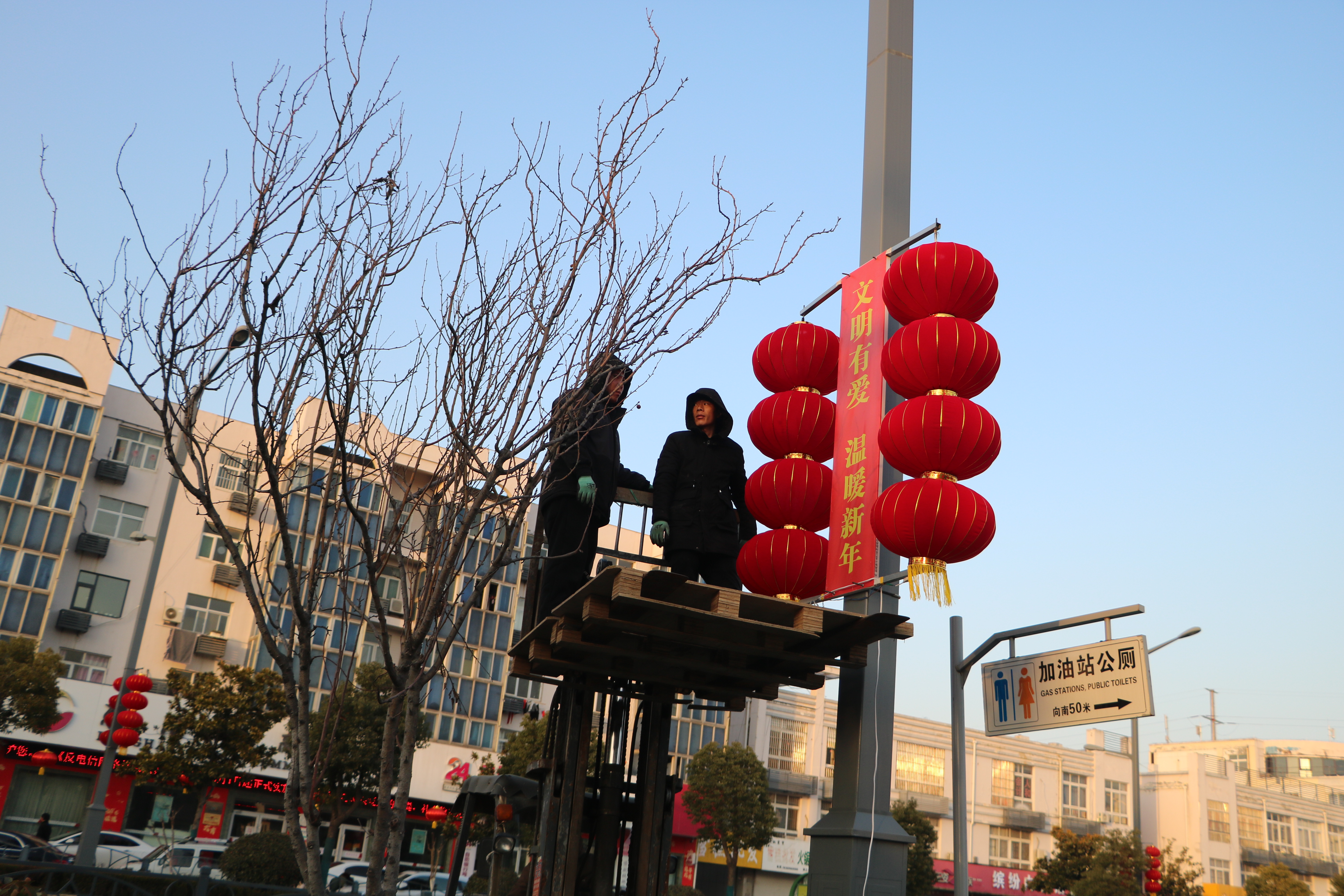 为营造喜庆的节日氛围,让广大居民过一个欢乐祥和的金兔新春佳节,东海县城管局按照“烘托氛围、祥和安全、勤俭节约”的原则,以广告科为主,组织人员在城区海陵路、迎宾大道、幸福路、府苑路8条等主要道路及路段两侧灯杆,共计悬挂530余组、4300余只灯笼。营造“喜气迎春、祥和晶城,文明有爱、温暖新年”的节日氛围,增强广大市民的幸福感和自豪感。
