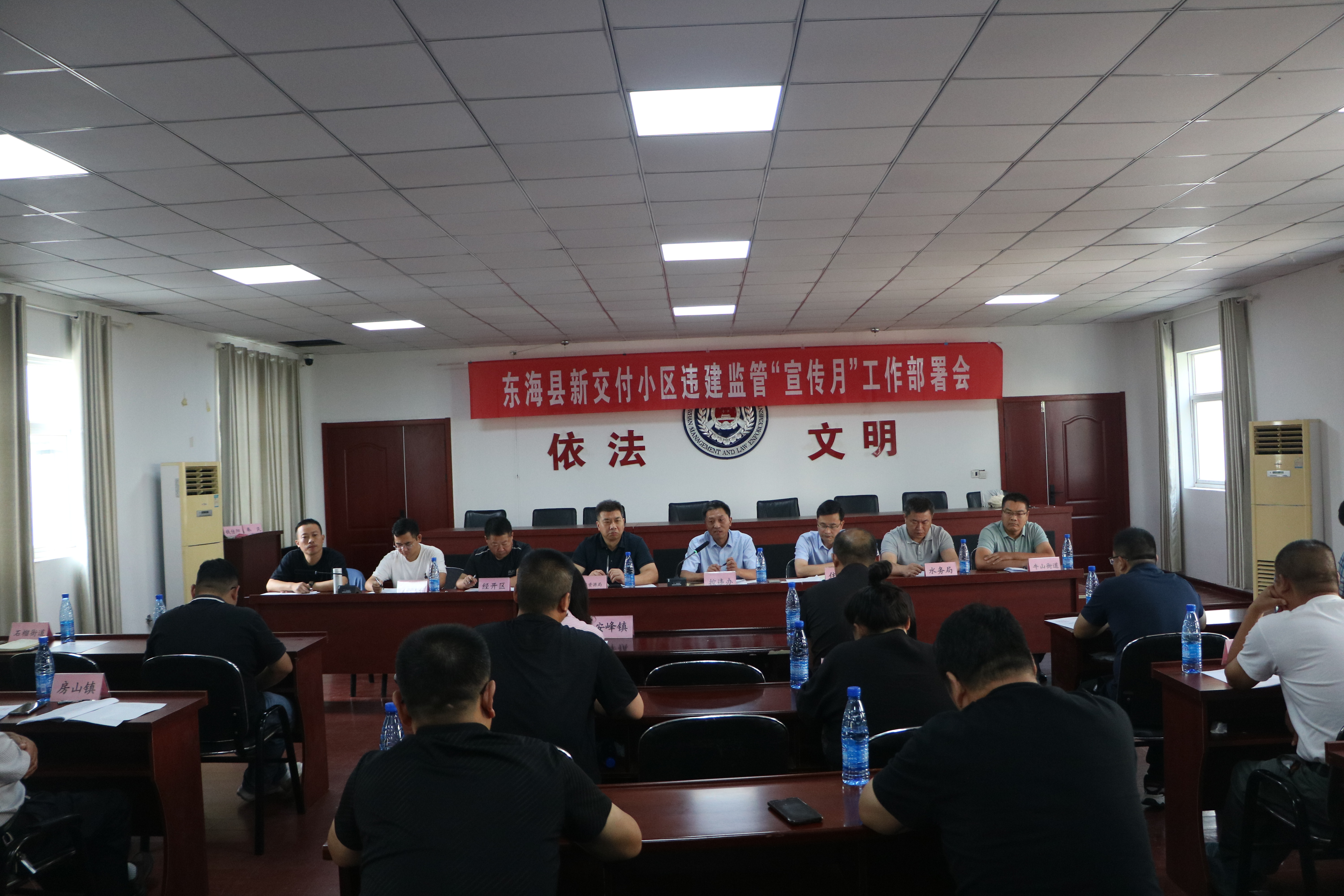 9月6日,江苏省东海县控制和查处违法建设工作领导小组,根据市控委办发(2023)19号文件、县控违办发[2023]5号文件《关于加强我市新交付小区违法建设监管工作的意见》“宣传月”活动的通知精神,组织召开县控违办、县住建局、水务局、自然资源局、中国人民银行东海县支行、县经开区、牛山街道、乡镇等有关单位负责人参加的关于新交付小区违法建设监管宣传工作会议。会议根据市、县控违办文件精神要求,在全县范围内开展新交付小区违法建设监管工作“宣传月”活动。通过广泛宣传,将全面提升社会知晓率,增强广大业主参与违建管控自觉性,确保小区违法建设早发现、早处置,实现小区新增违法建设动态“清零”。