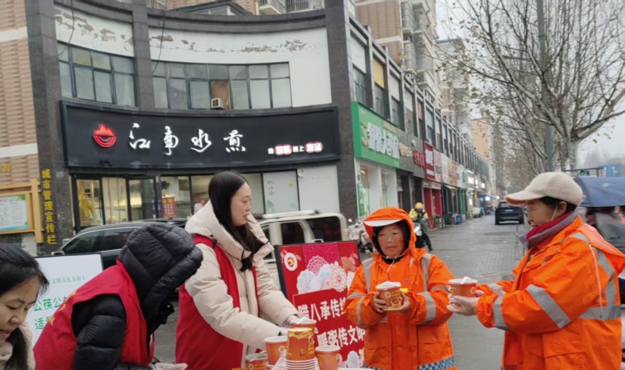 1月26日,农历十二月初八,是我国传统的腊八节,大都有喝腊八粥的习俗。腊八节当天早上6时许,由东海县县委宣传部、县总工会、县文明办等多家单位联办,组织开展“腊八福粥.情暖晶都”活动,在县城区设置派送点,同时提前通知为广大环卫工人发放腊八粥,让他们感受到社会大家庭的温暖。为寒冷笼罩下的环卫工人送去了关怀和温暖,让环卫工人感受到了浓浓的关爱和真挚的温暖 。