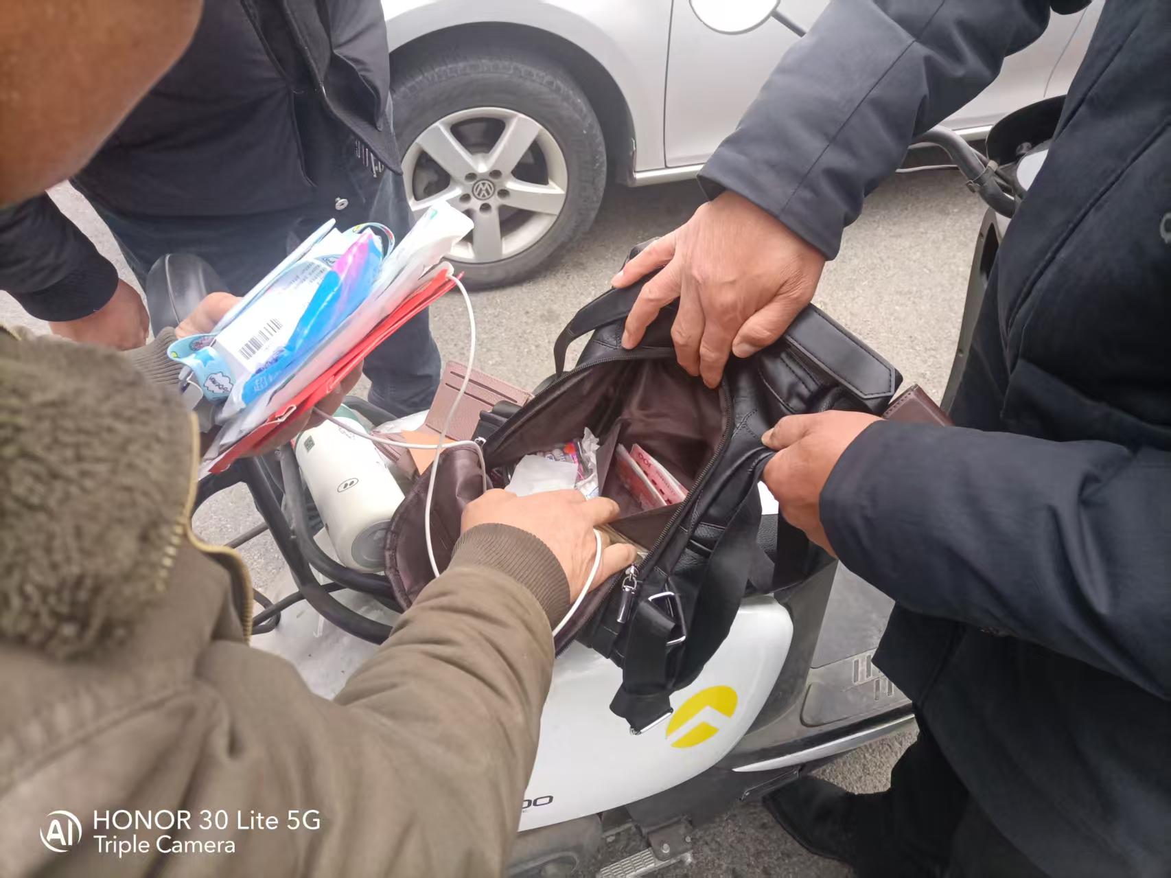 原来,在2月21日中午11时30分,环卫处清运科环卫工人冯祥志下班后,像往常一样走在回家的路上。当他途经花园路和海陵路交叉口幼儿园隔壁时,发现地上有一个被遗落的双肩包,冯师傅第一时间捡起了包,他深知失主此刻一定非常焦急。冯祥志急忙联系清运科张科长,他与张科长一起打开双肩包,发现包里面有现金5000多元,银行卡,身份证及生活用品。张科长按照身份证地址联系英疃村里熟人,直接联系到丢失主的哥哥,约他到英疃村部门口将钱物交给他。在归还时,他们还仔细与失主的哥哥核对了包内物品,确保无一遗漏。失主田云在得知自己的包被找回后,十分感动,特意制作了一面锦旗,赠送给冯祥志。