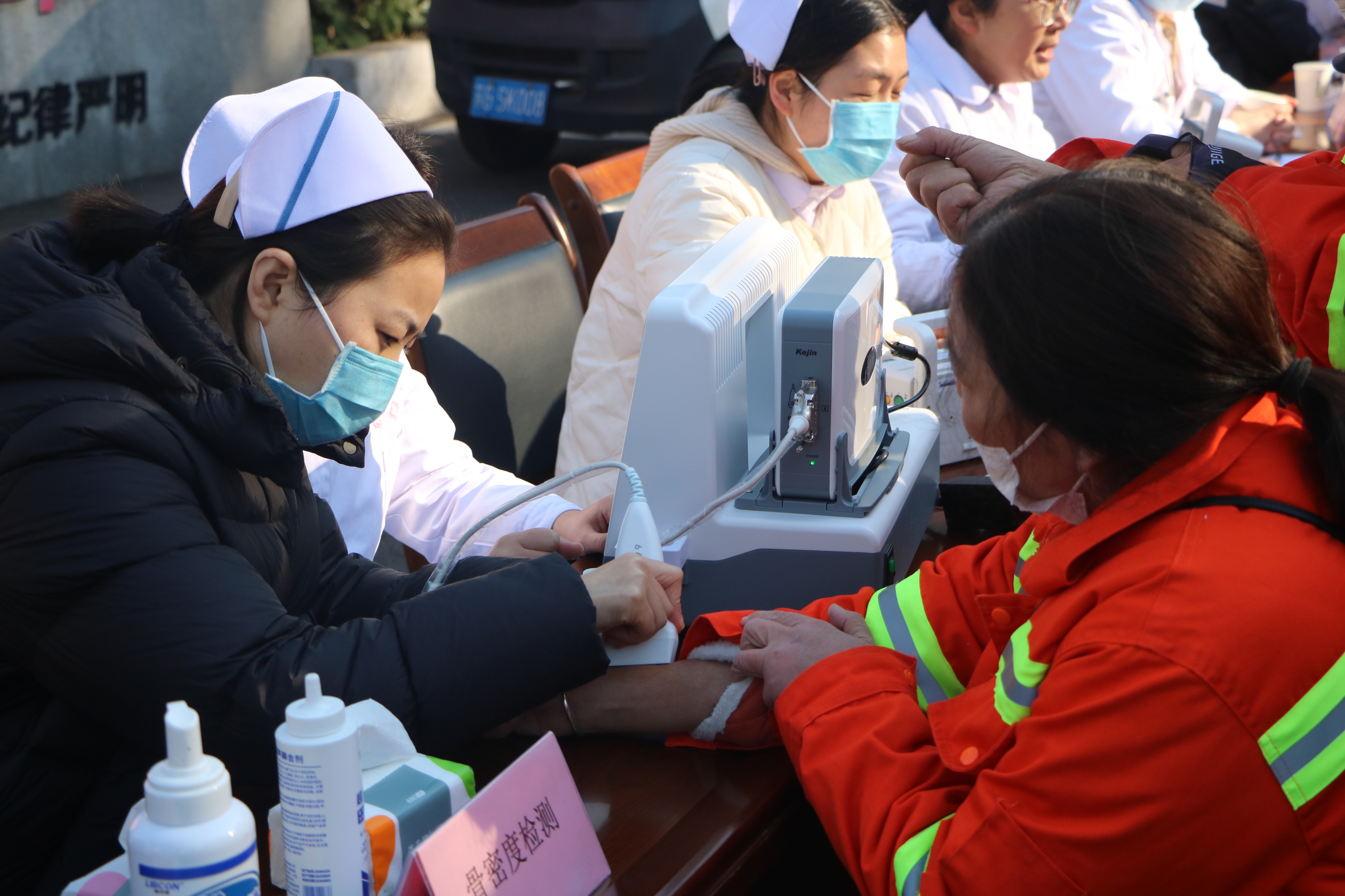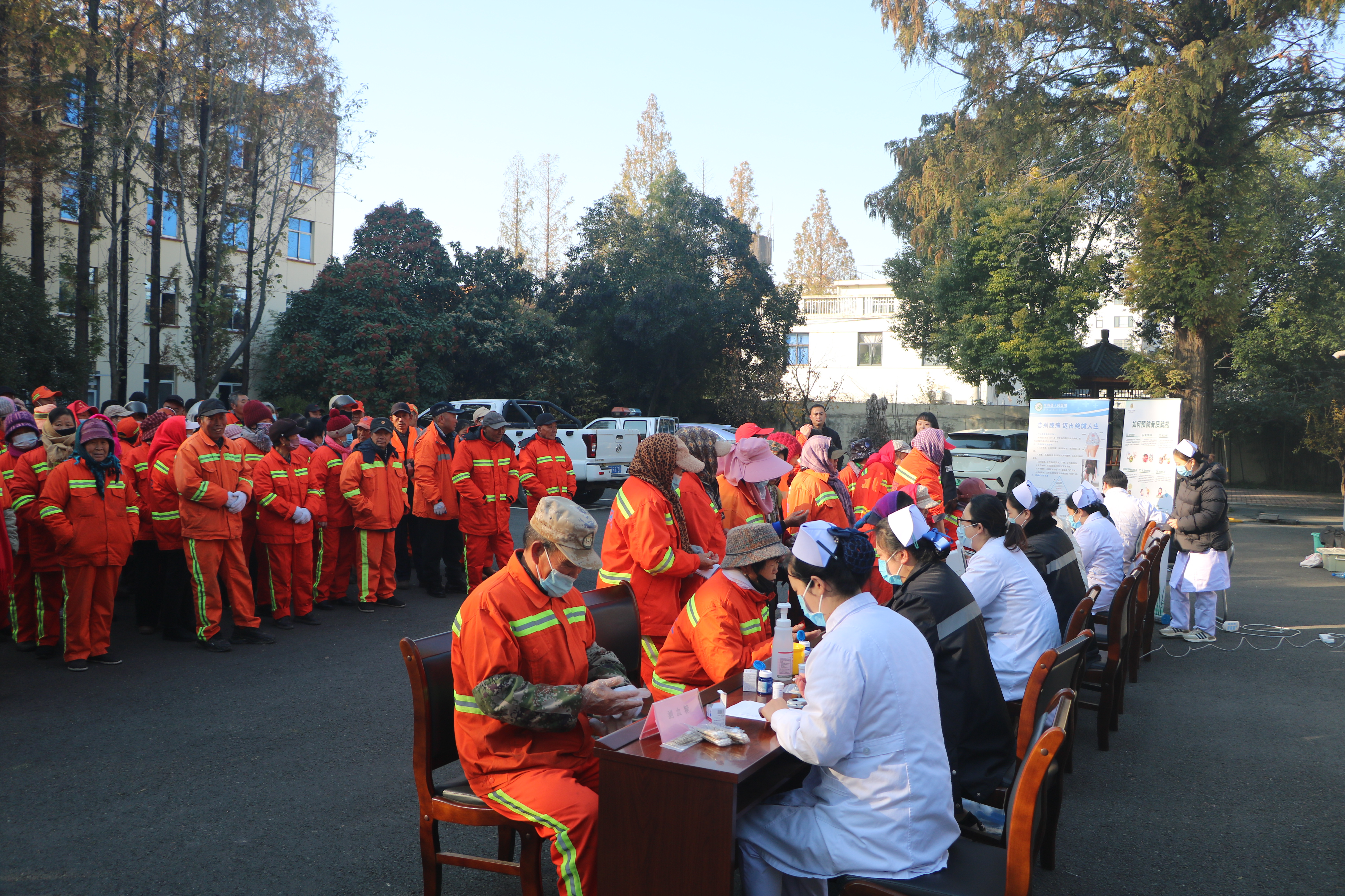 作为城市洁净的守护者,环卫工人常年坚守户外,日均承担数小时弯腰清扫、负重搬运等工作,脊柱、膝关节等部位易受劳损,且多数工人因作业繁忙,往往忽视自身健康检查。为此,环卫处提前与县医院深入沟通,结合工人年龄结构、户外作业特性及常见健康隐患,共同定制体检方案,重点涵盖血糖检测、血压测量、骨密度检查、关节检查等项目,精准匹配工人职业健康需求。