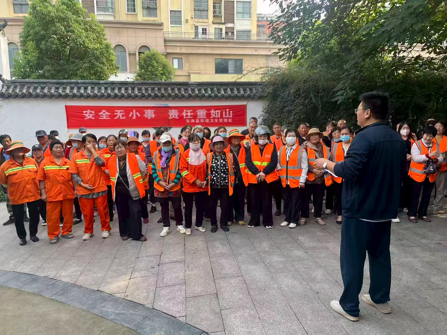 统一行动增强紧迫感。元旦过后,新春佳节临近,县城区流动人员增多,街道路面卫生垃圾量随之增加。为此,环卫处及早着手,组织环卫保洁人员,继续实行“5+2”、“白+黑”环卫保洁工作制,700多名清扫、清运环卫保洁人员,分别在各自责任区内,一天完成二至三次清扫保洁。与此同时,环卫处组织30多辆垃圾运输车,做到日产日清日运生活垃圾,平均每天清运城区生活垃圾近300吨,为广大群众创造靓丽的卫生环境。