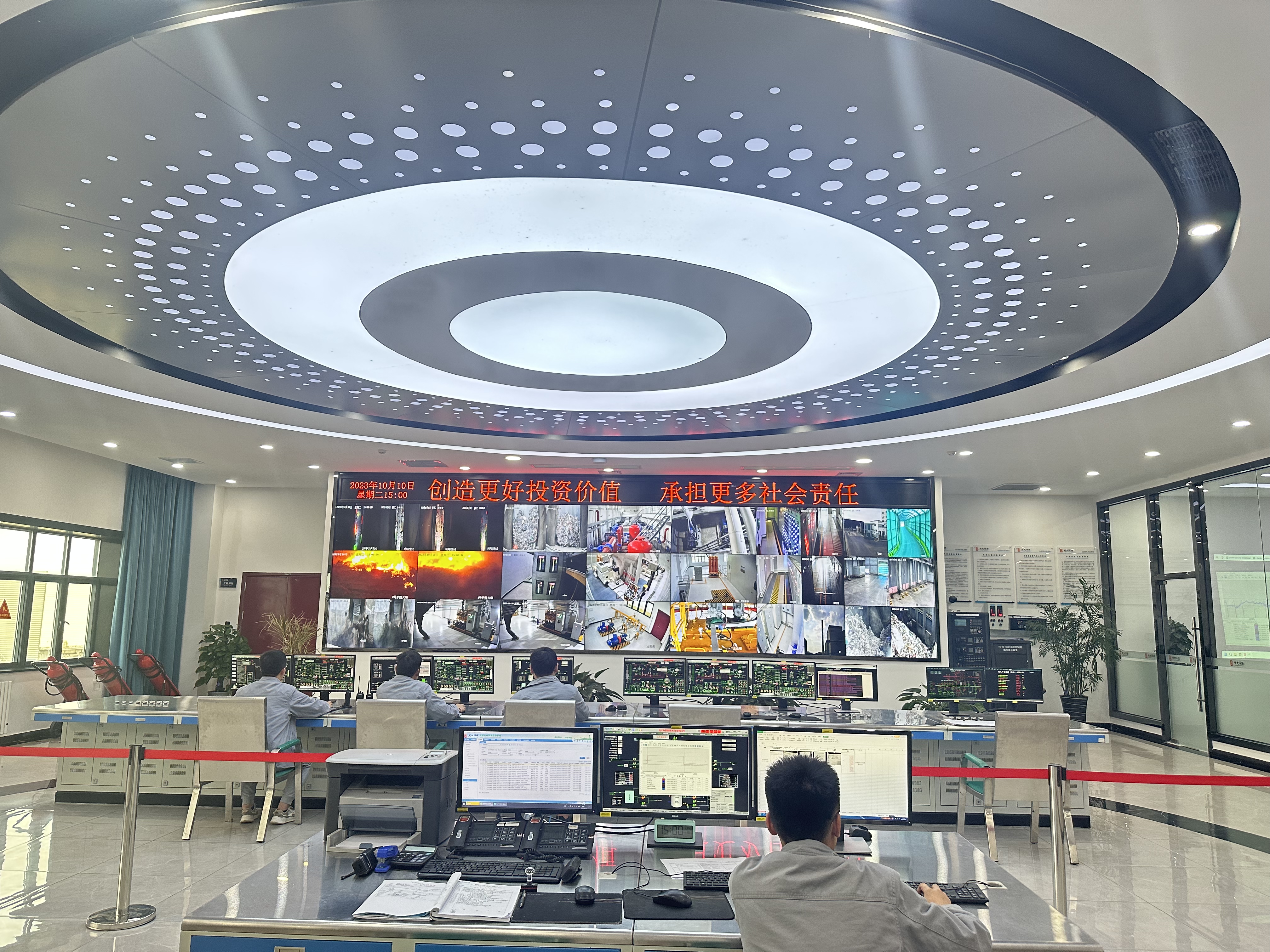 生活垃圾被“吃干榨净”。在光大现代能源发电厂指挥中心大屏幕上,可以实时查看垃圾储仓、焚烧过程。“垃圾在850℃以上的高温环境下就可以完全分解,焚烧炉温度控制在850℃至1000℃之间。”现场技术人员介绍,通过足够的炉内高温和停留时间,加上专利技术对垃圾作进一步的吸附处理,对烟气中其他有害物质的净化,最后的排放均可达到国家规定的标准。