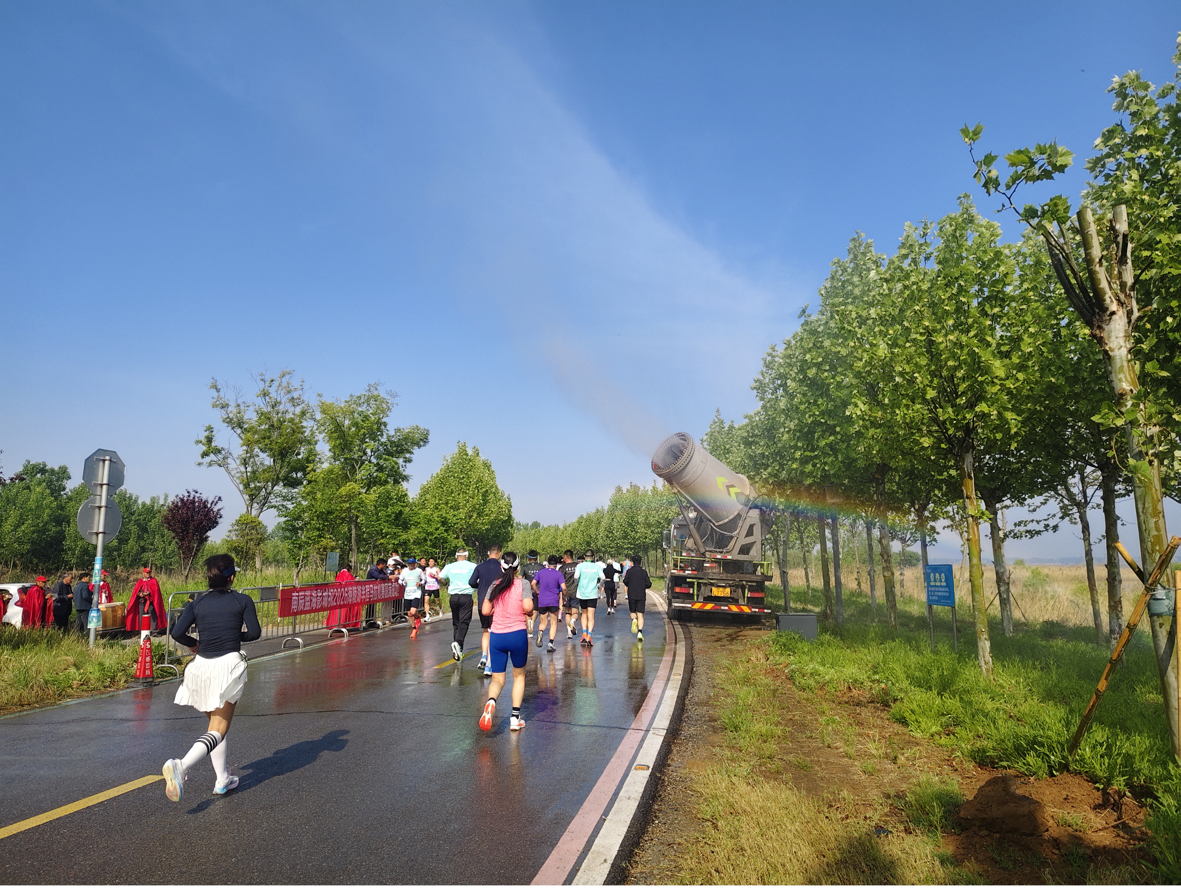 为保障赛道增湿降尘,让跑者安心参赛,东海县城管局安排3辆雾炮车为赛道喷雾洒水降尘,同时按照赛事组委会要求,用专业与用心筑牢保障防线,为参赛者的逐梦之路保驾护航,让赛事既有竞技的激情,更彰显东海城市温度。赛场之外皆是风景,市民游客自觉遵守秩序、文明驻足观赛,雾炮车持续喷雾保湿降尘,共同守护赛道与海陵湖原生态美景。