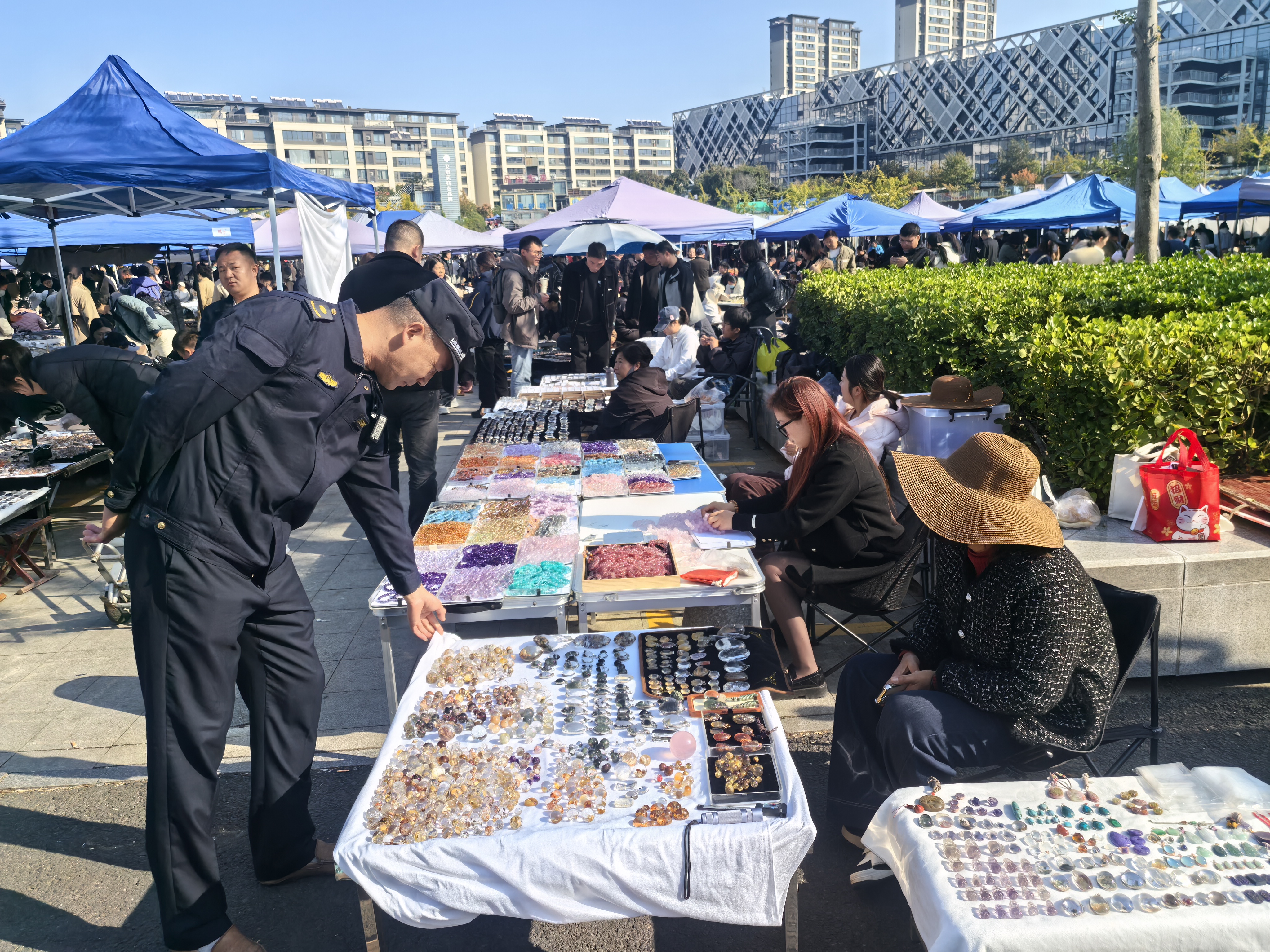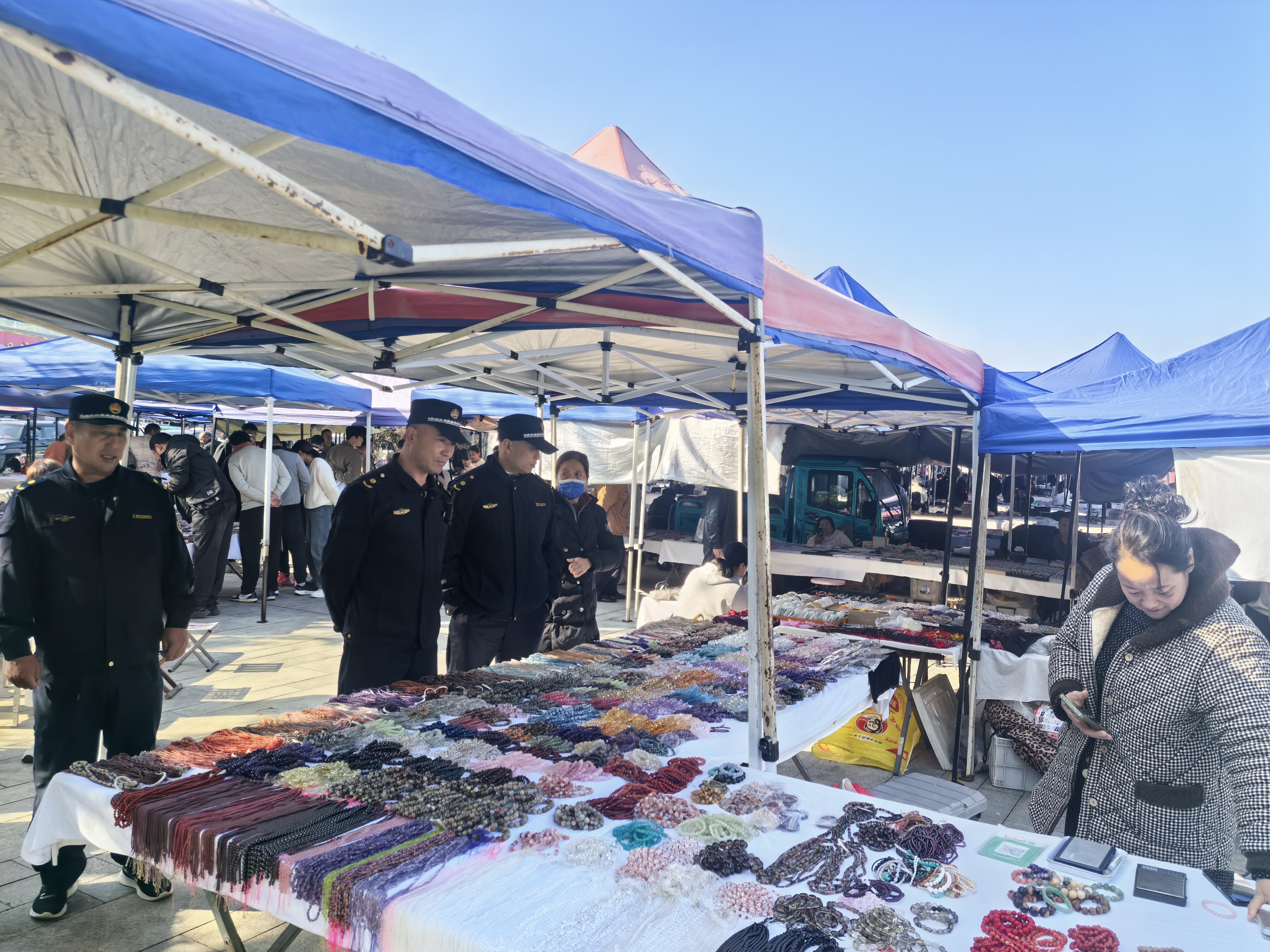 每逢水晶城逢大集的日子,早上7时许,城管中队管理人员就已经到位,疏导道路交通,保障车辆通行,对乱停乱放的非机动车辆进行移位管理。同时对水晶制品摊位正常巡查,及时处理商户的各种诉求,为商户提供便捷服务。到岗前,队员们便整理好着装,带着热线转办的工单,开启一天的辖区巡查工作。“一个上午至少五至六趟循环巡查,如果有需要临时处理的情况,我们都会随时与中队保持联络。”城管中队队员李军说。