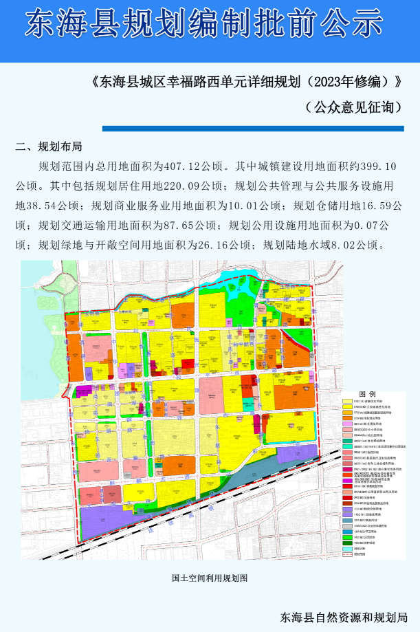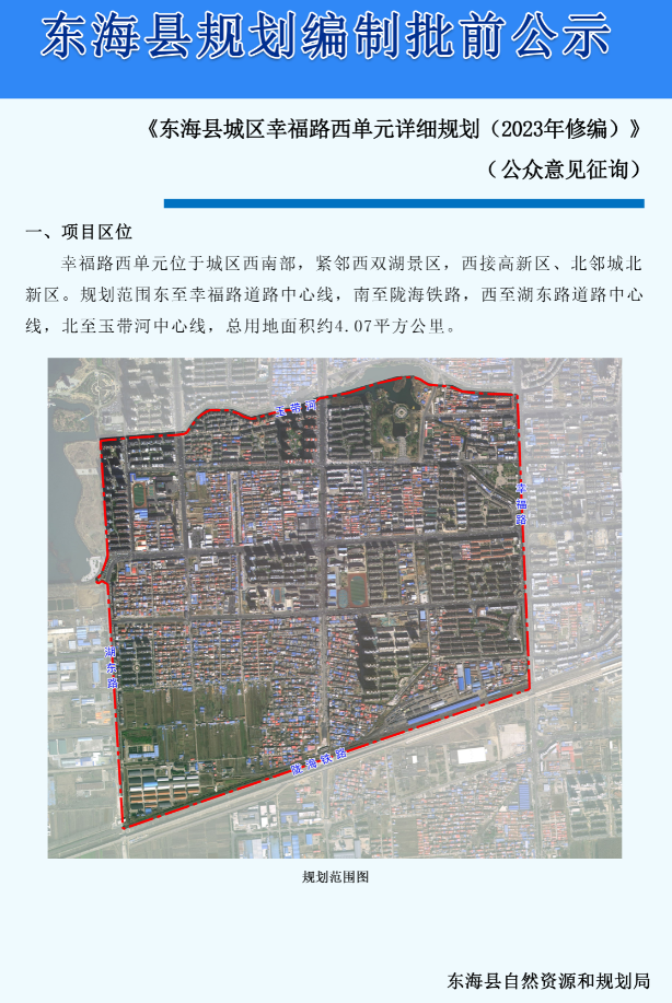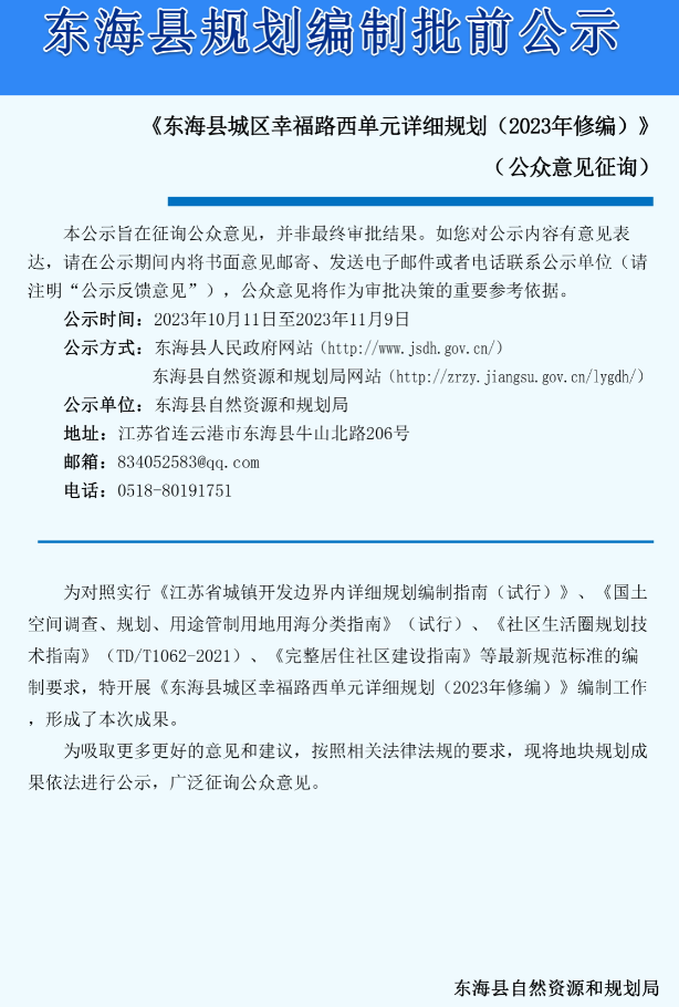 《东海县城区幸福路西单元详细规划(2023年修编)》批前公示