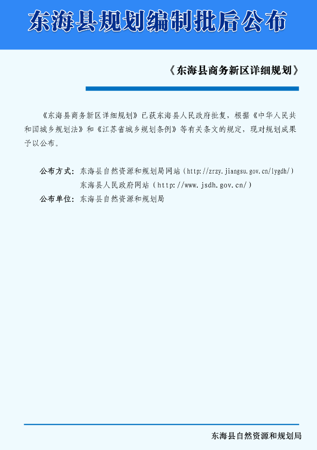 《东海县商务新区详细规划》规划公示(批后)