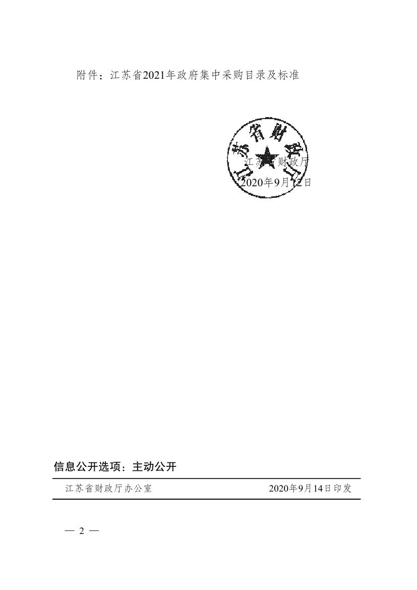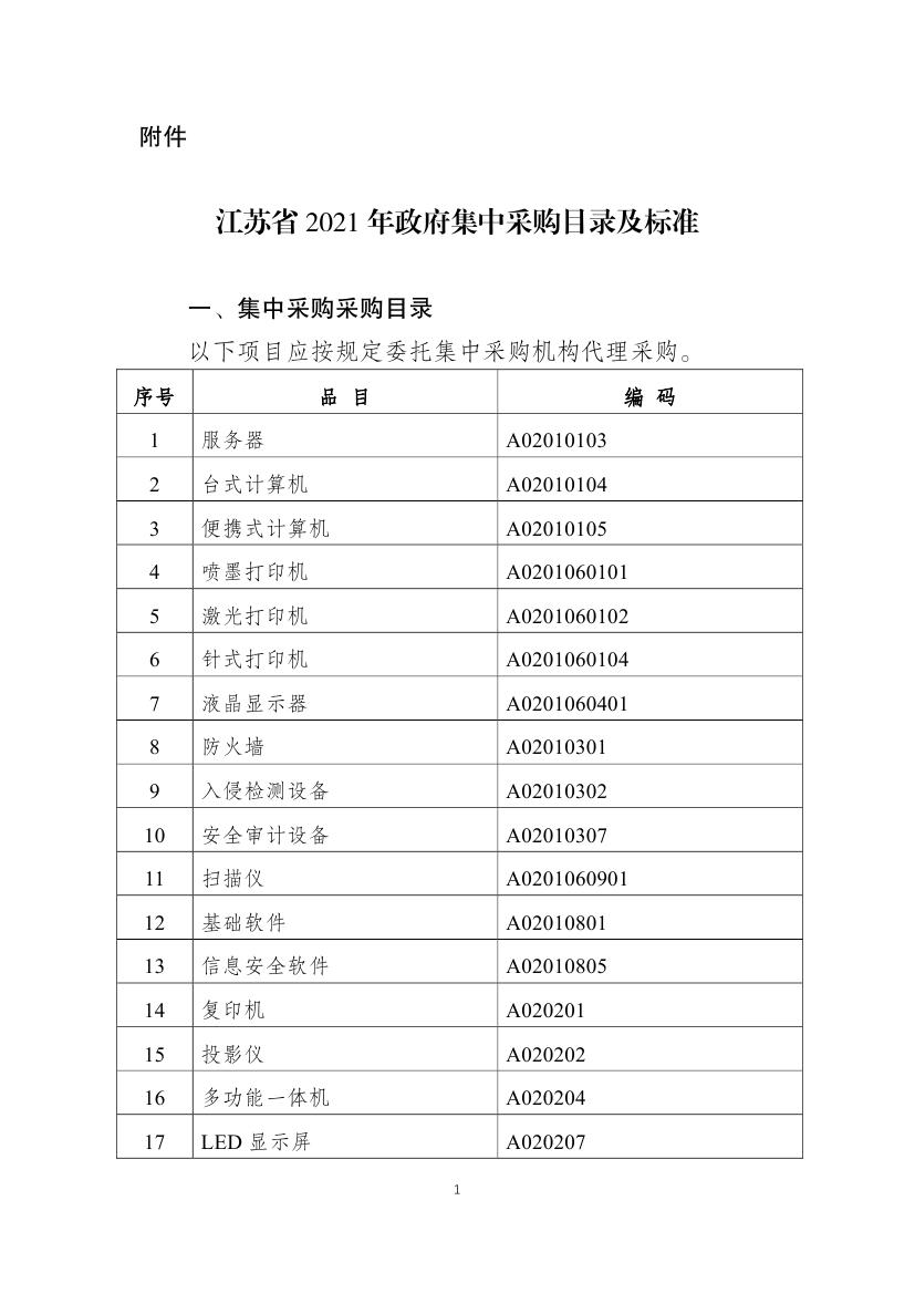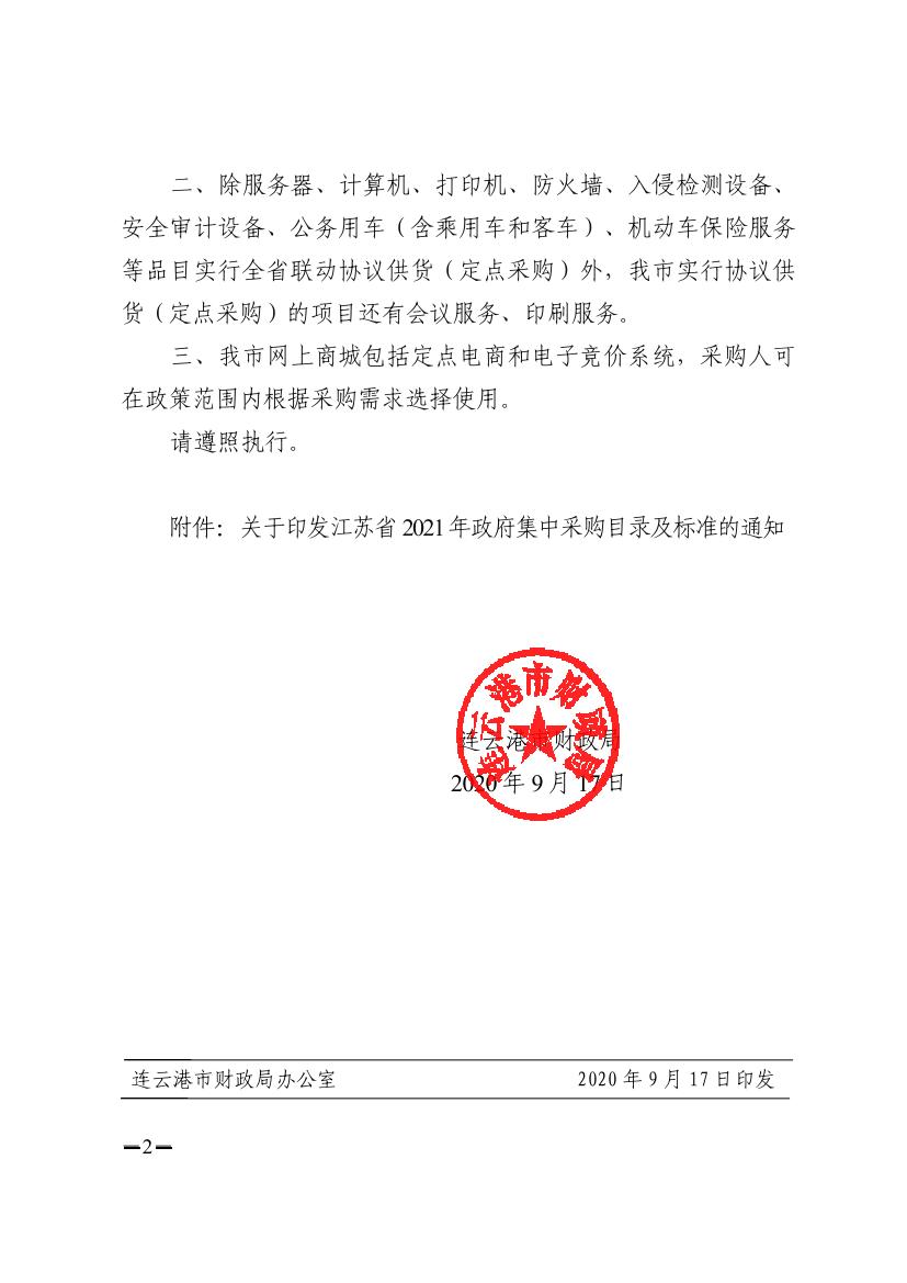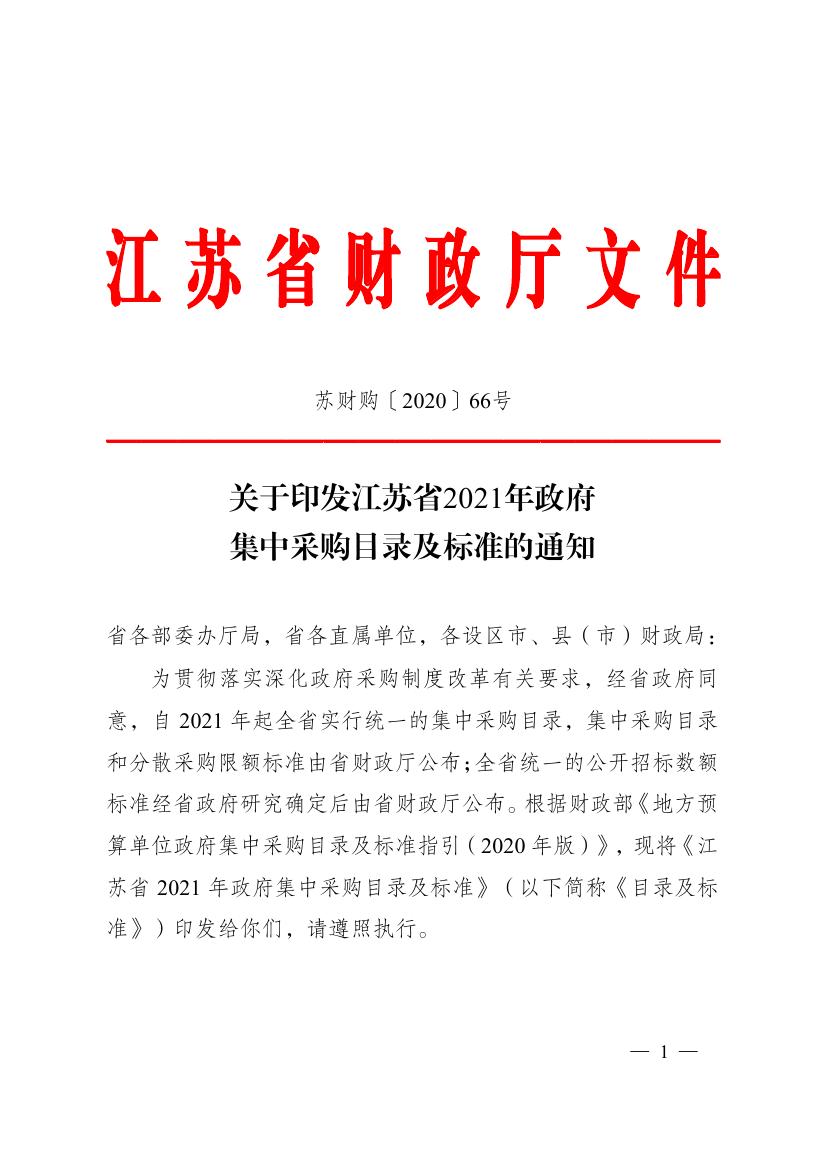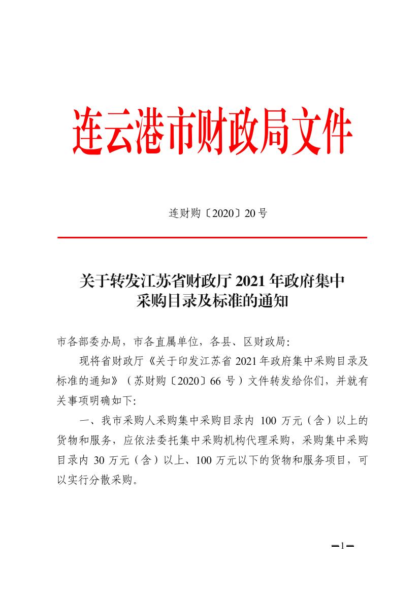 关于转发江苏省财政厅2021年政府集中采购目录及标准的通知(连财购〔2020〕20号)