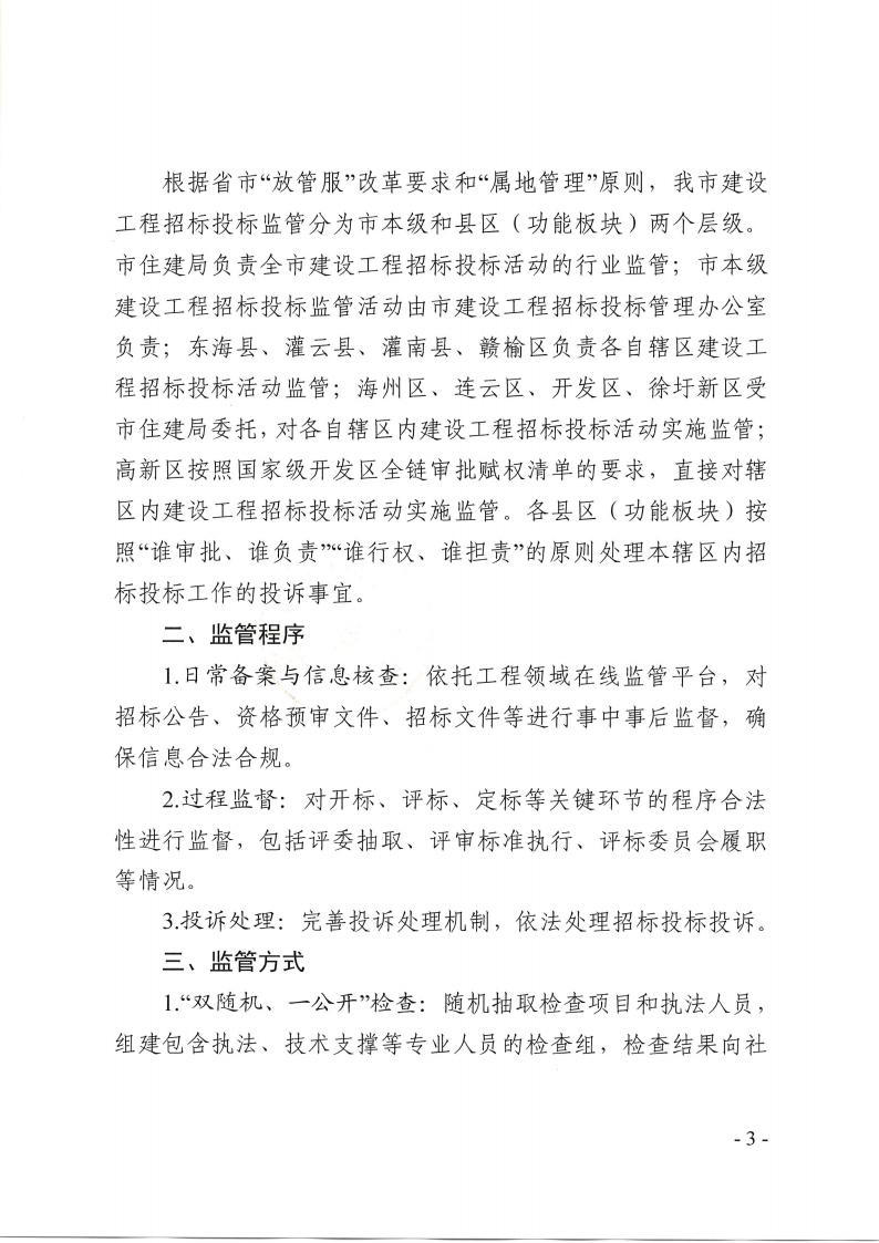 连云港市住房和城乡建设局关于印发建设工程招标投标行政监督责任清单的通知