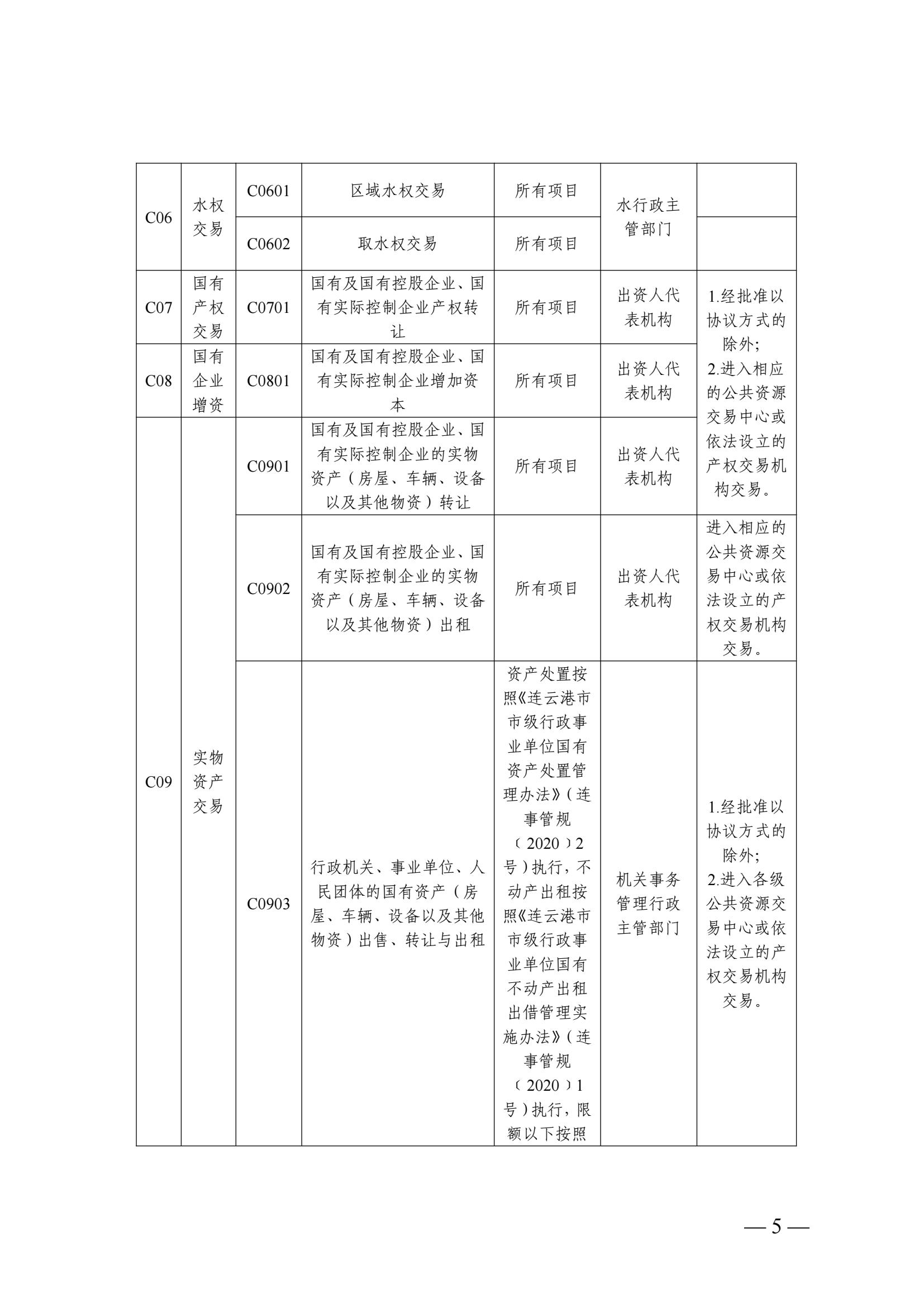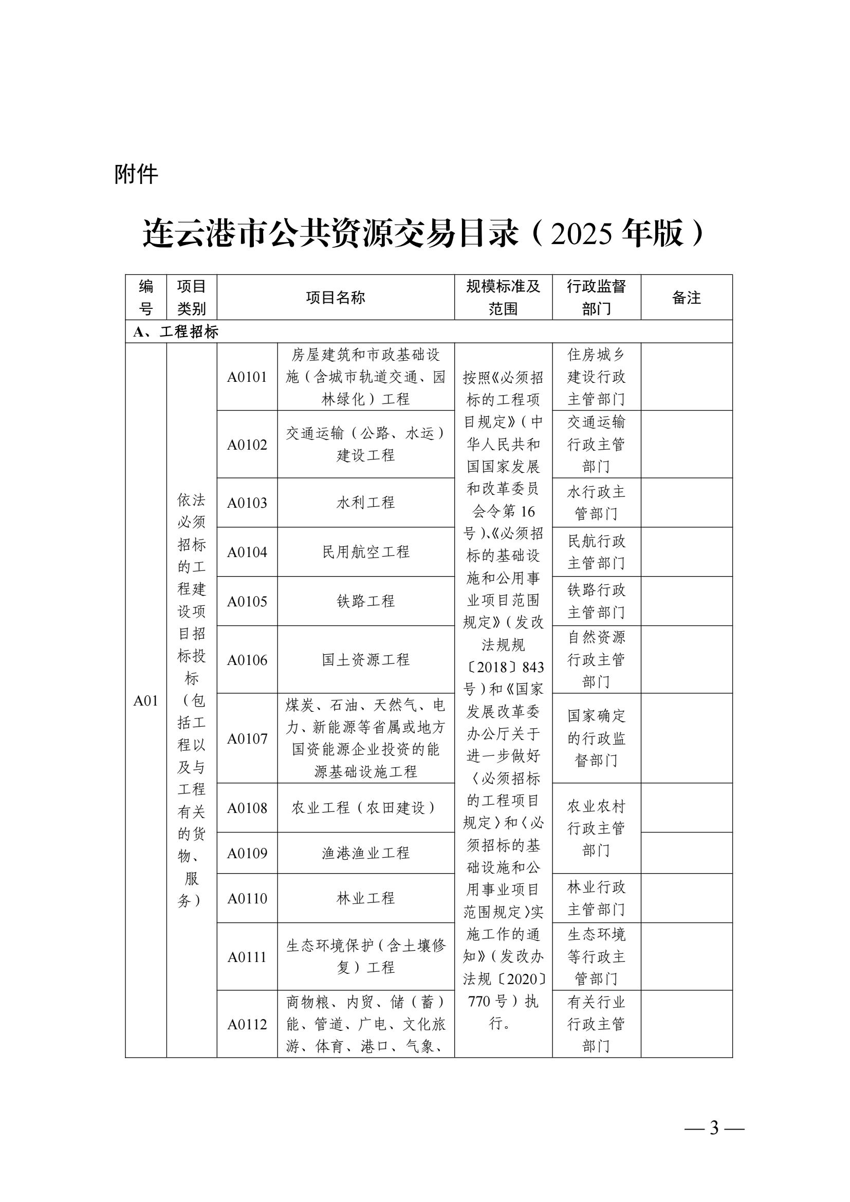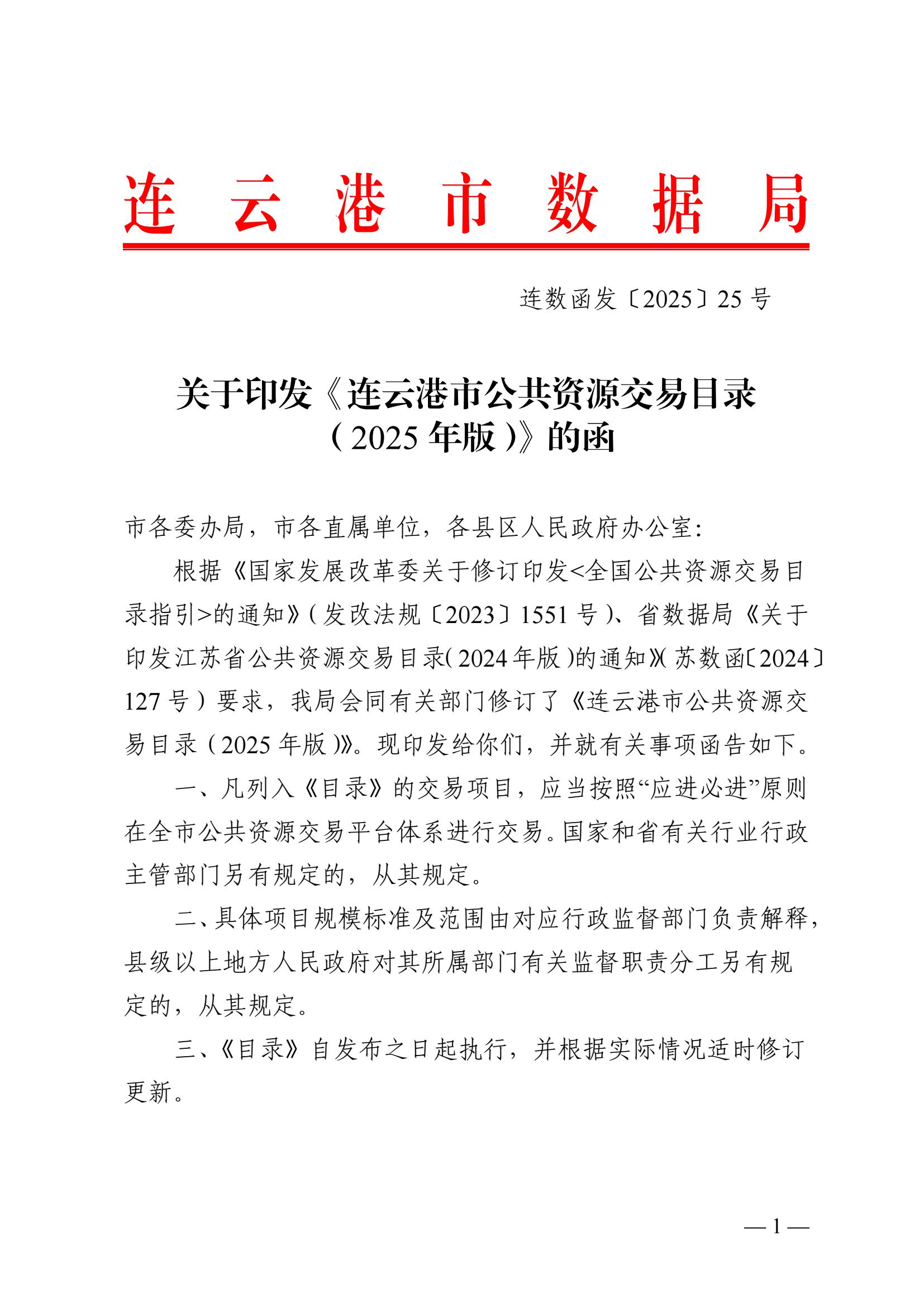 关于印发《连云港市公共资源交易目录(2025年版)》的函