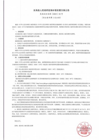 东海县人民政府征地补偿安置方案公告