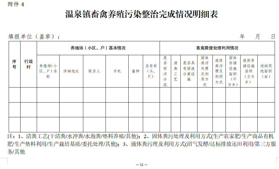 4.畜禽养殖污染整治完成情况明细表